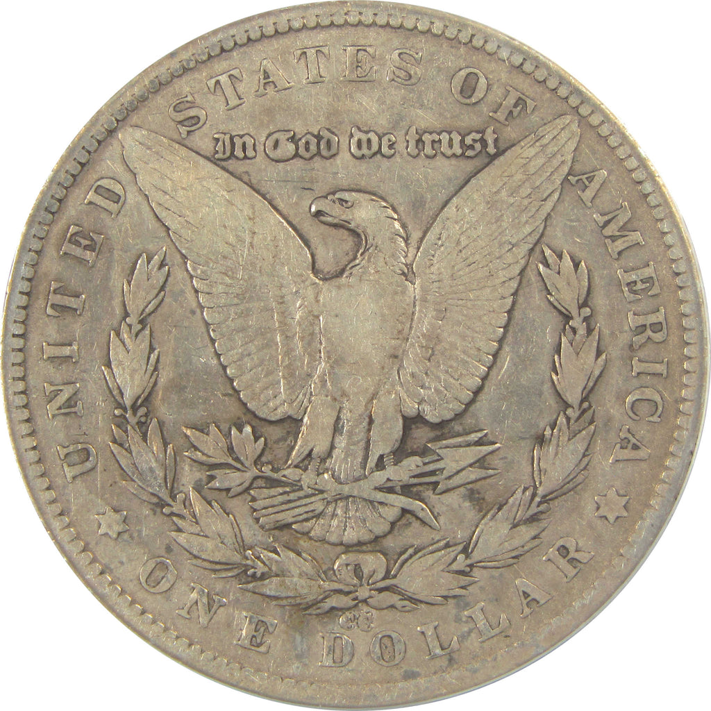 This large 90% silver Morgan dollar bears George T. Morgan's classic depiction of Liberty facing left in a Phrygian cap and a spray of leaves held by a ribbon inscribed LIBERTY. The reverse features an eagle clutching a branch and three arrows.