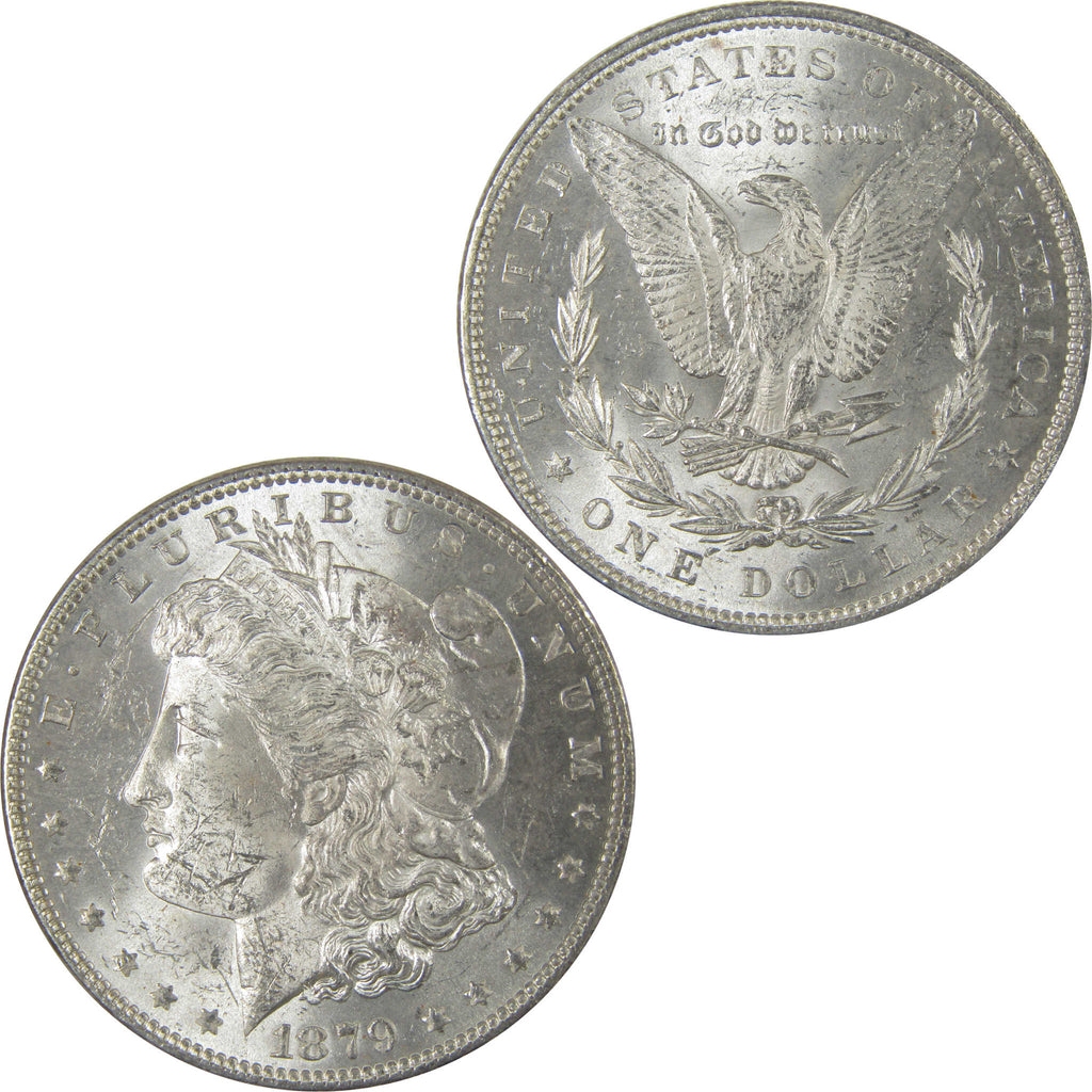 A genuine 1879 Morgan Silver Dollar Coin, in Uncirculated Mint State Condition. Contains 90% Silver