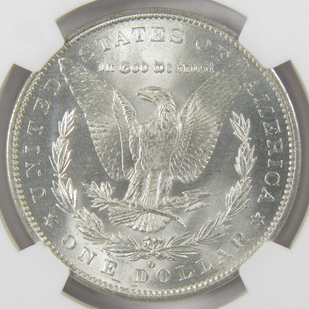 A genuine 1879 O Morgan Silver Dollar Coin, graded and certified MS 65 by NGC. Contains 90% Silver