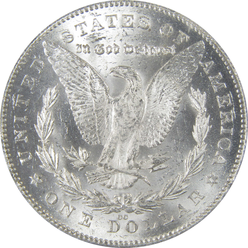 This large 90% silver Morgan dollar bears George T. Morgan's classic depiction of Liberty facing left in a Phrygian cap and a spray of leaves held by a ribbon inscribed LIBERTY. The reverse features an eagle clutching a branch and three arrows.