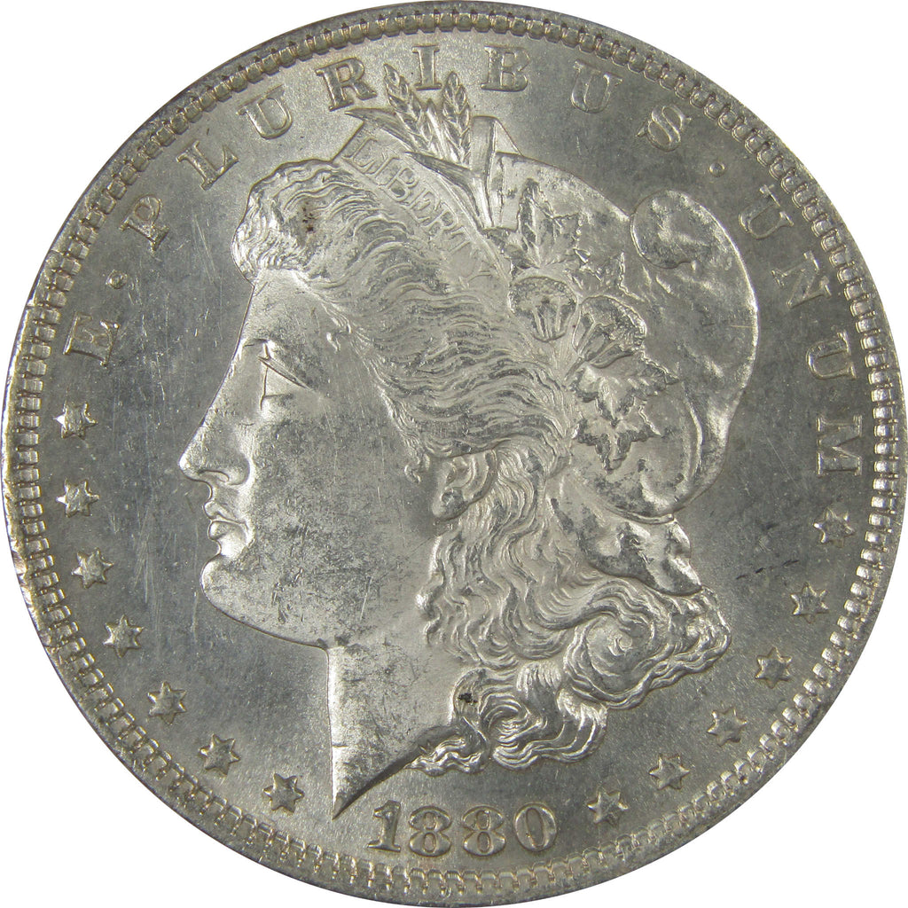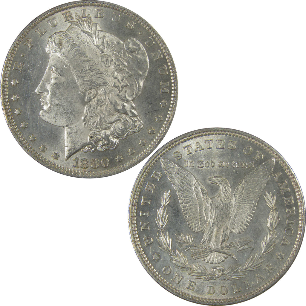 A genuine 1880 Morgan Silver Dollar Coin, in Uncirculated Mint State Condition. Contains 90% Silver