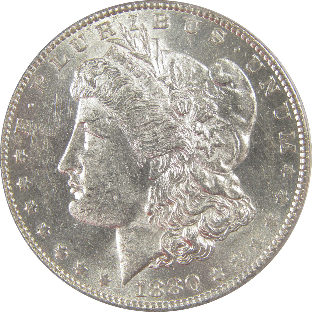 A genuine 1880 O Morgan Silver Dollar Coin, graded and certified AU 55 by ANACS. Contains 90% Silver