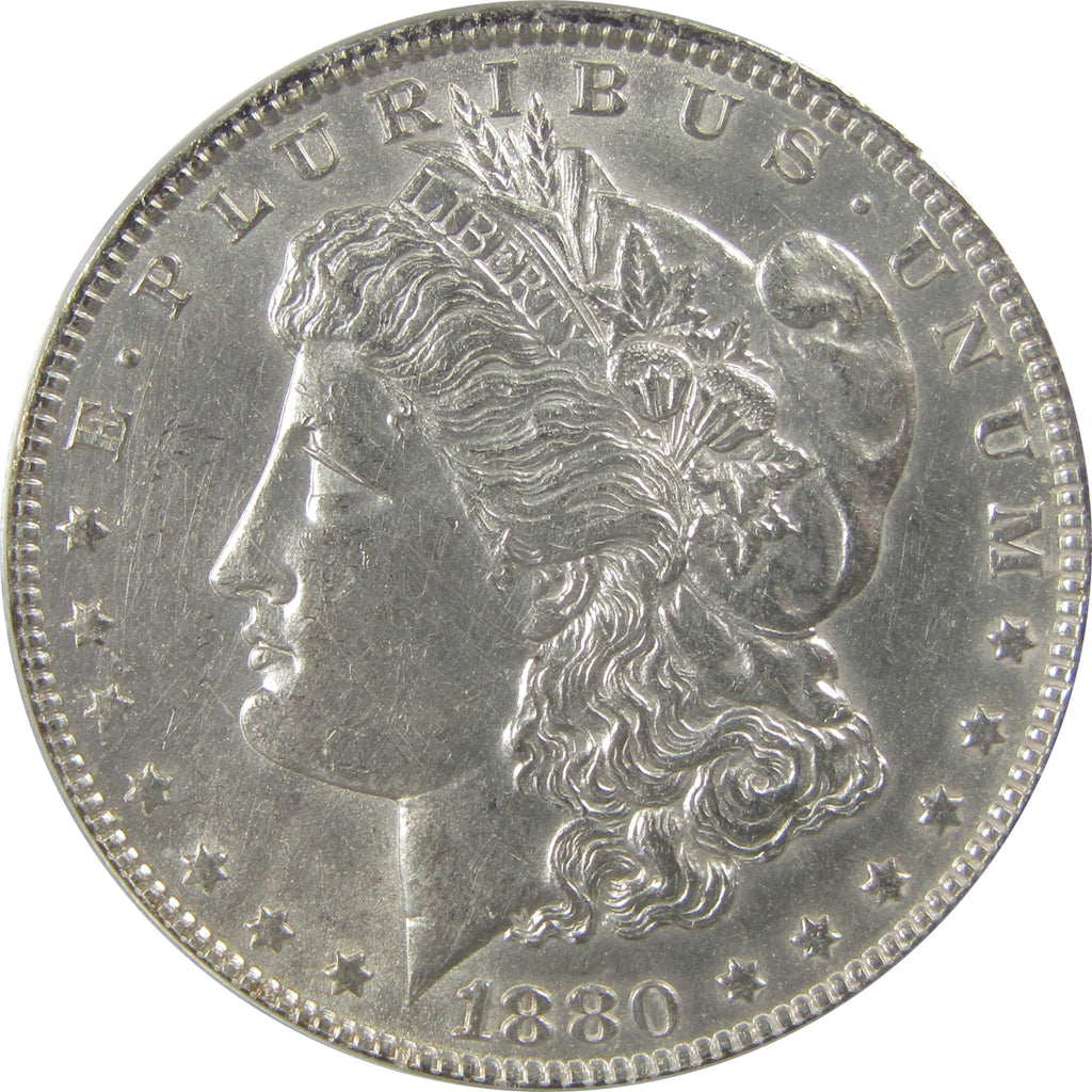 A genuine 1880 O Morgan Silver Dollar Coin, graded and certified AU 58 Details by ANACS. Contains 90% Silver. Cleaned