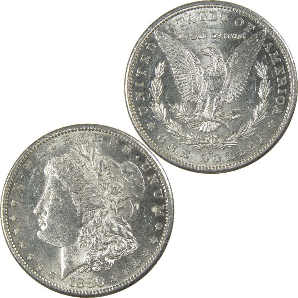 A genuine 1880 S Morgan Silver Dollar Coin, in CH AU Choice About Uncirculated Condition. Contains 90% Silver