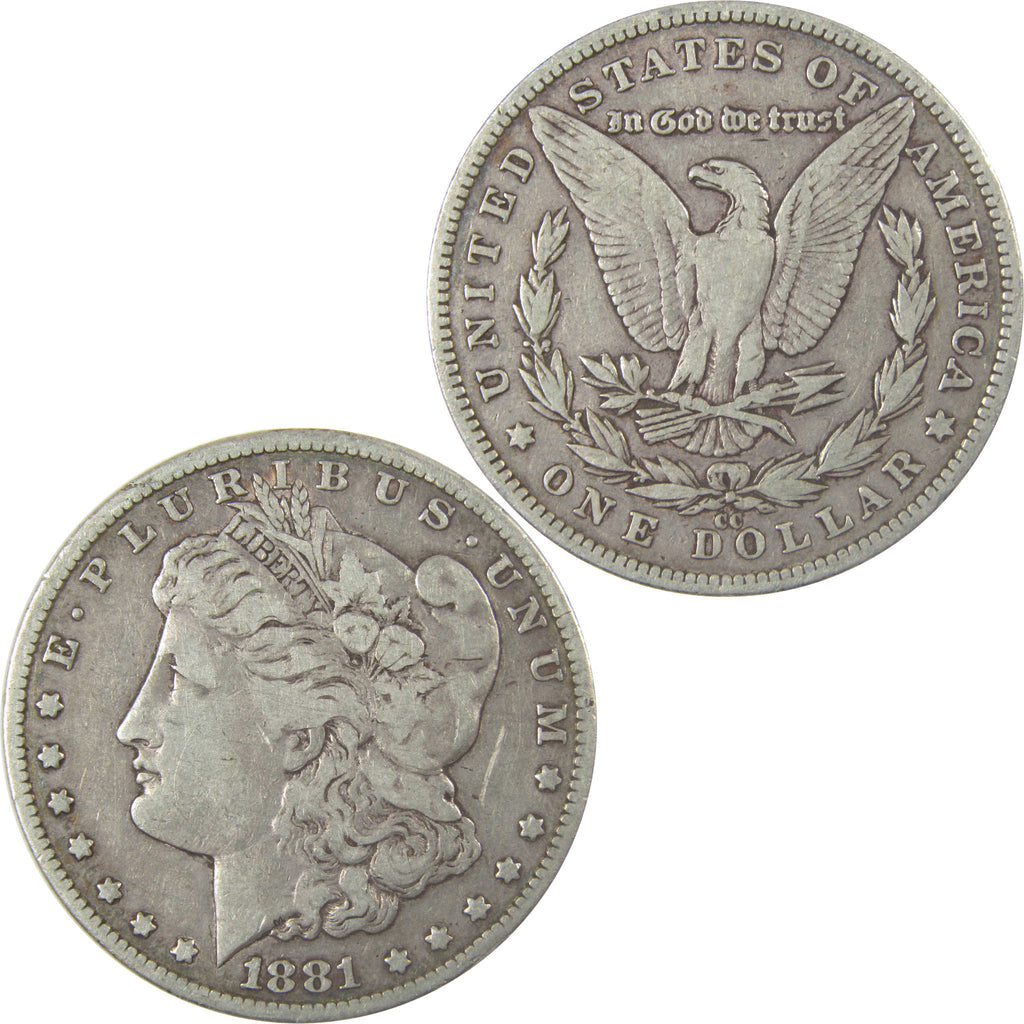 A genuine 1881 CC Morgan Silver Dollar Coin, in F Fine Condition. Contains 90% Silver