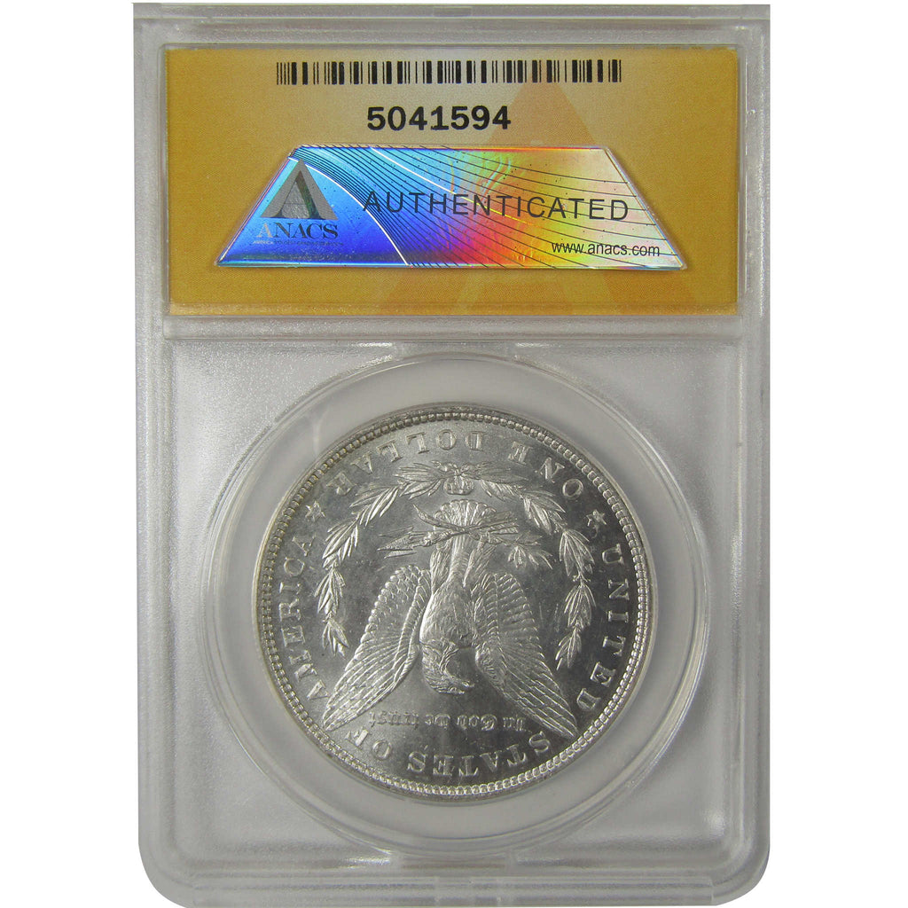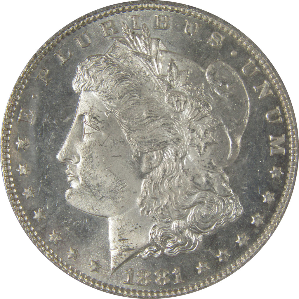 A genuine 1881 Morgan Silver Dollar Coin, graded and certified MS 62 by ANACS. Contains 90% Silver