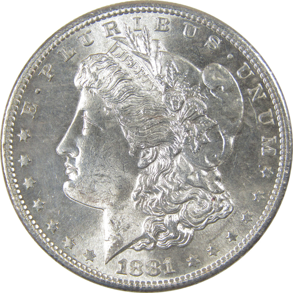A genuine 1881 S Morgan Silver Dollar Coin, in Uncirculated Details Condition. Contains 90% Silver. Scratched