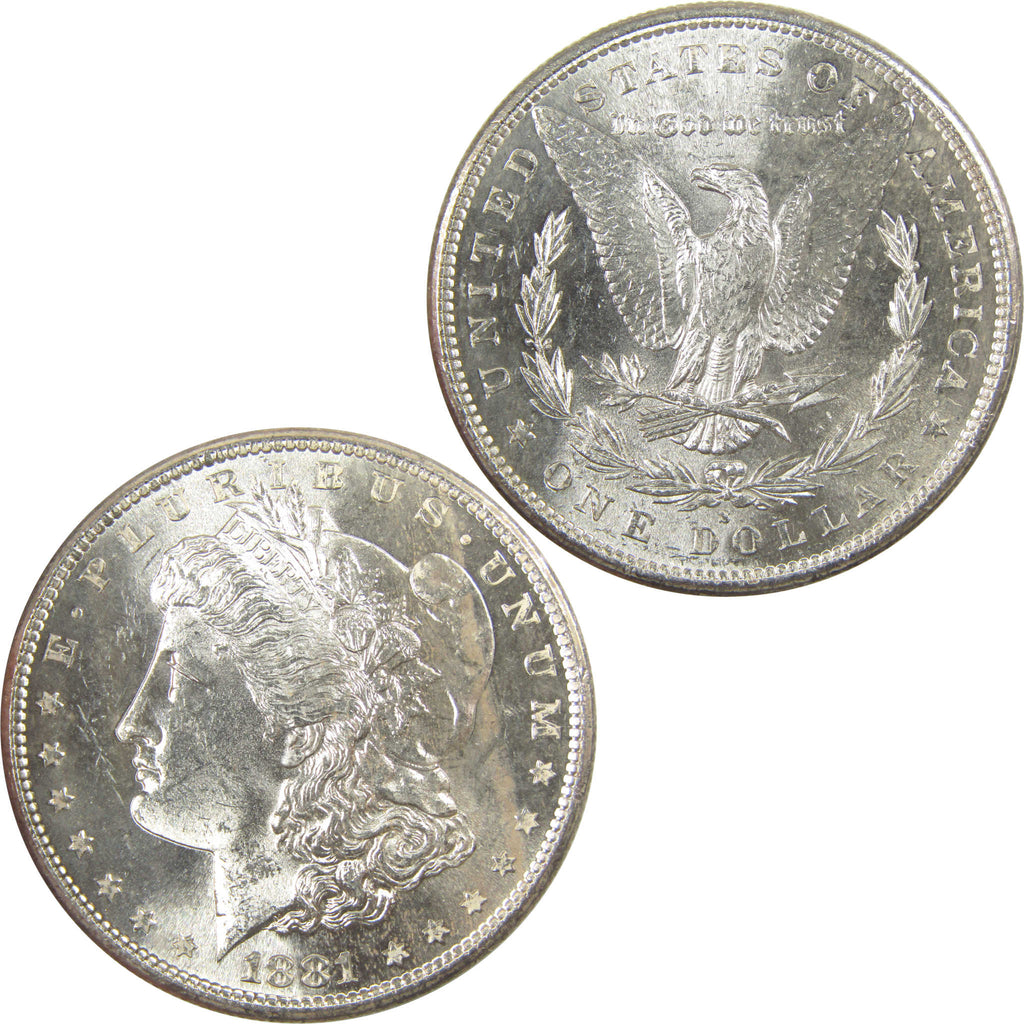 A genuine 1881 S Morgan Silver Dollar Coin, in Uncirculated Mint State Condition. Contains 90% Silver