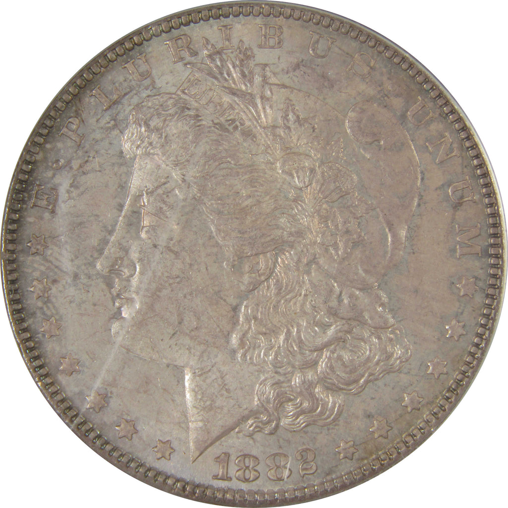 A genuine 1882 Morgan Silver Dollar Coin, graded and certified MS 62 by ANACS. Contains 90% Silver. Toned