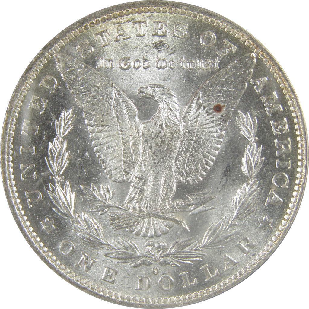 This large 90% silver Morgan dollar bears George T. Morgan's classic depiction of Liberty facing left in a Phrygian cap and a spray of leaves held by a ribbon inscribed LIBERTY. The reverse features an eagle clutching a branch and three arrows.