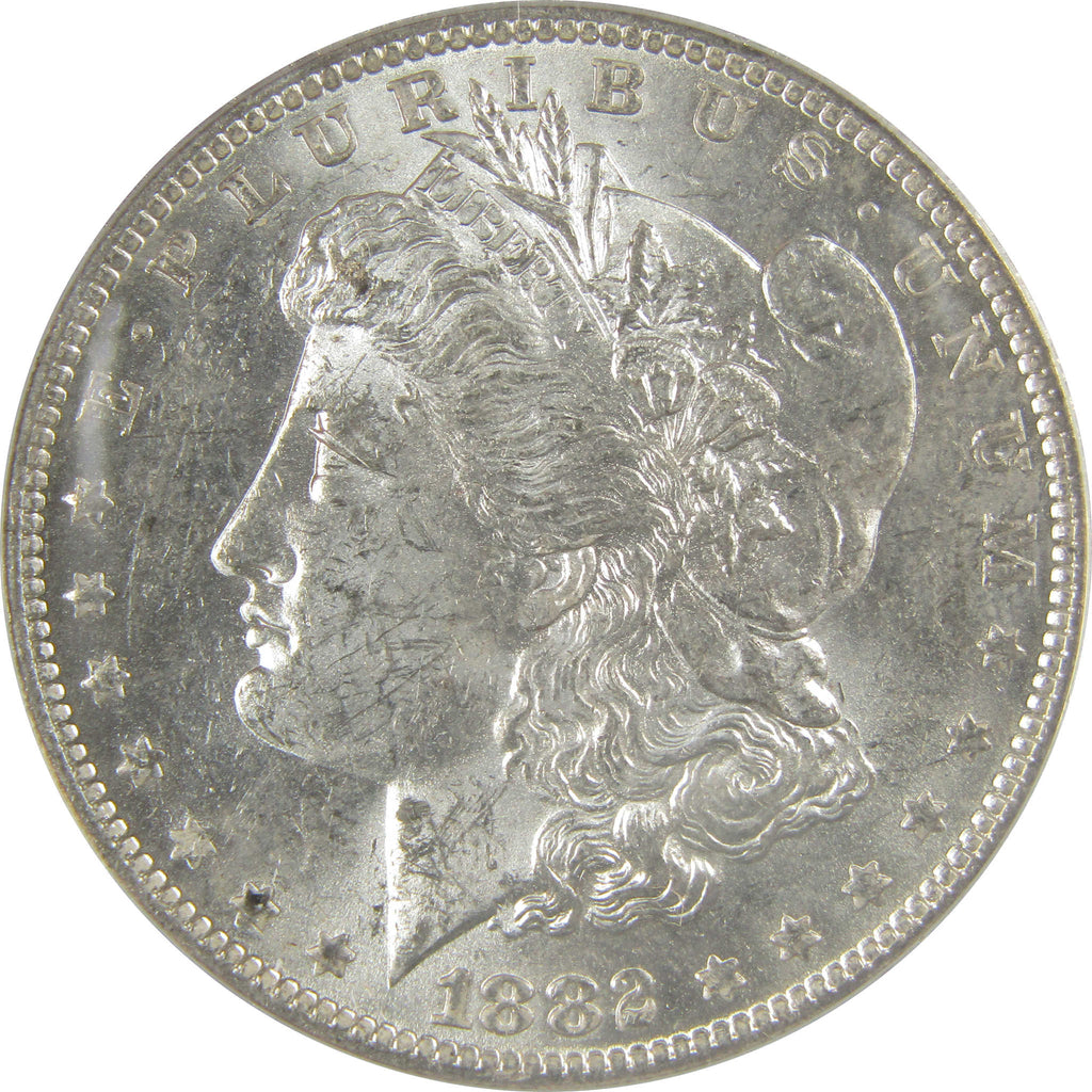 A genuine 1882 O/S VAM-4, Recessed, Top 100 Morgan Silver Dollar Coin, graded and certified MS 61 by ANACS. Contains 90% Silver