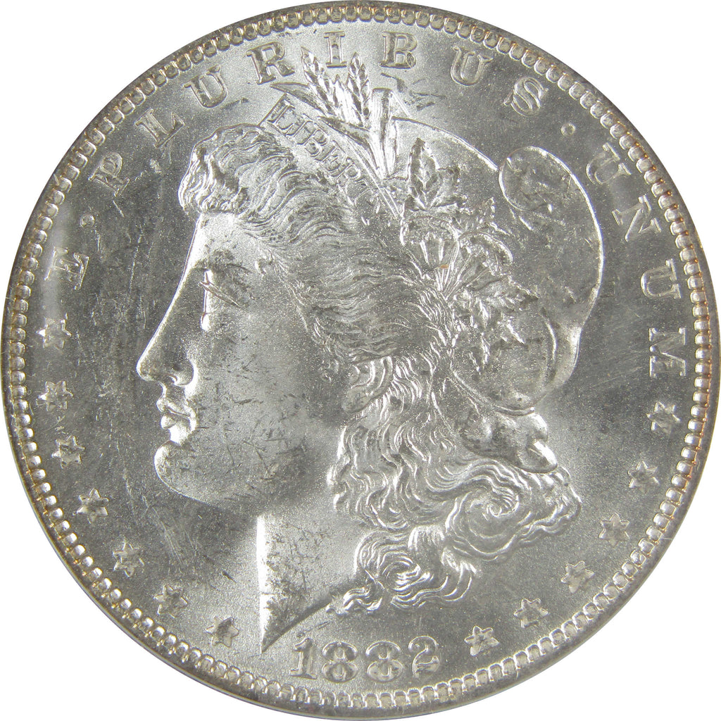 A genuine 1882 O/S VAM-4, Recessed, Top 100 Morgan Silver Dollar Coin, graded and certified MS 62 by ANACS. Contains 90% Silver