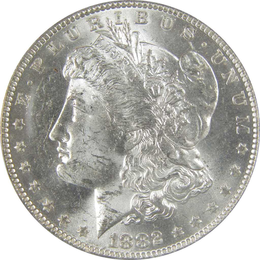 A genuine 1882 O/S VAM-4, Recessed, Top 100 Morgan Silver Dollar Coin, graded and certified MS 62 by ANACS. Contains 90% Silver
