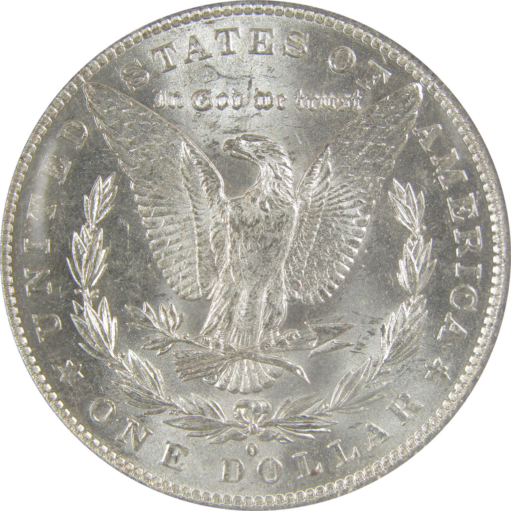 This large 90% silver Morgan dollar bears George T. Morgan's classic depiction of Liberty facing left in a Phrygian cap and a spray of leaves held by a ribbon inscribed LIBERTY. The reverse features an eagle clutching a branch and three arrows.