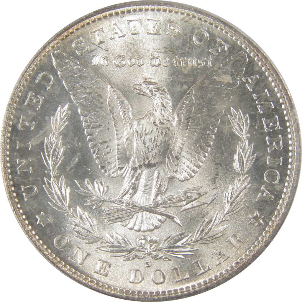 A genuine 1882 S Morgan Silver Dollar Coin, graded and certified MS 64 by PCGS. Contains 90% Silver