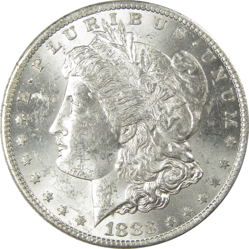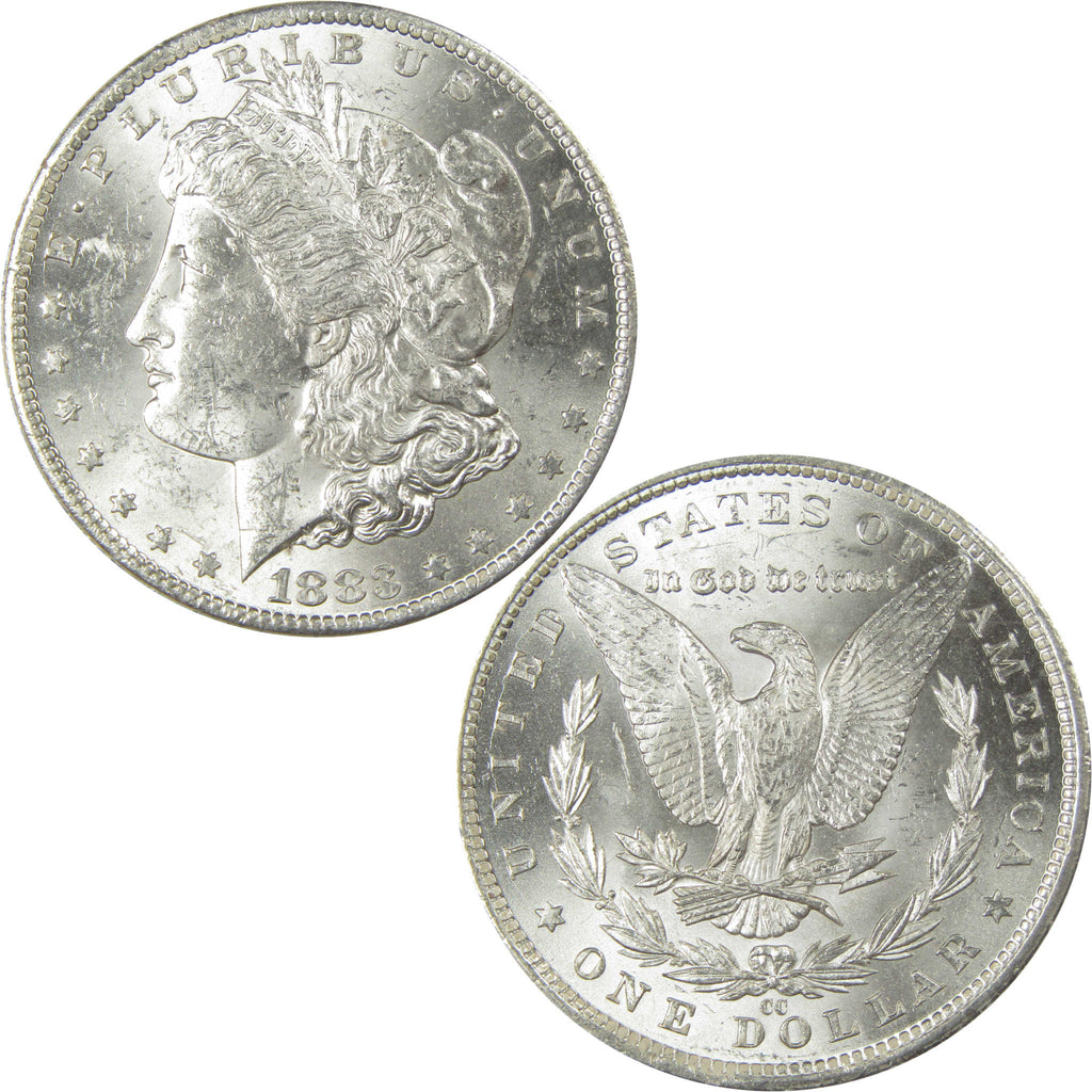 A genuine 1883 CC Morgan Silver Dollar Coin, in Uncirculated Mint State Condition. Contains 90% Silver