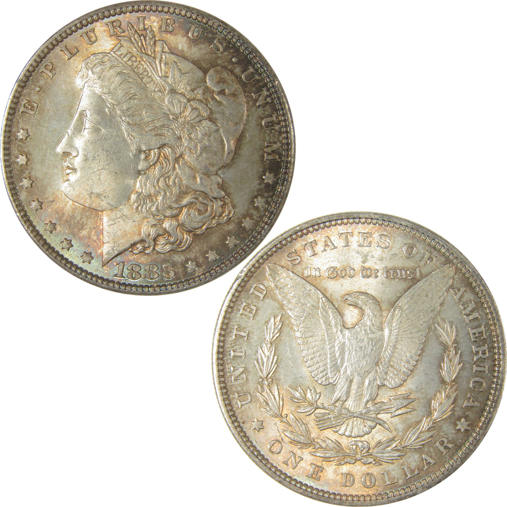 A genuine 1883 Morgan Silver Dollar Coin, in Uncirculated Mint State Condition. Contains 90% Silver. Toned