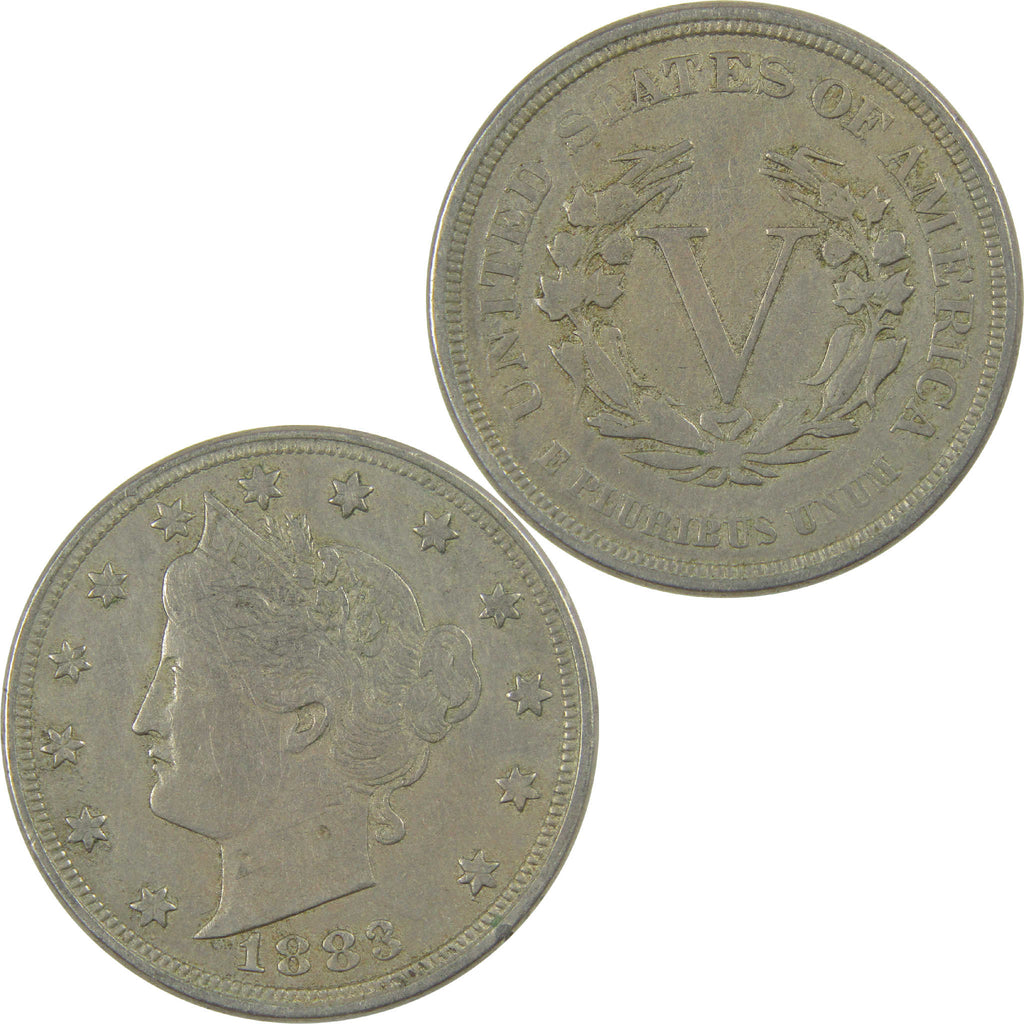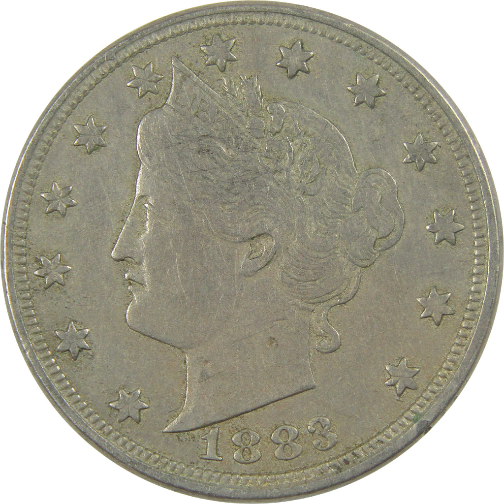 A genuine 1883 No Cents Liberty Head V Nickel Coin, in Circulated Condition