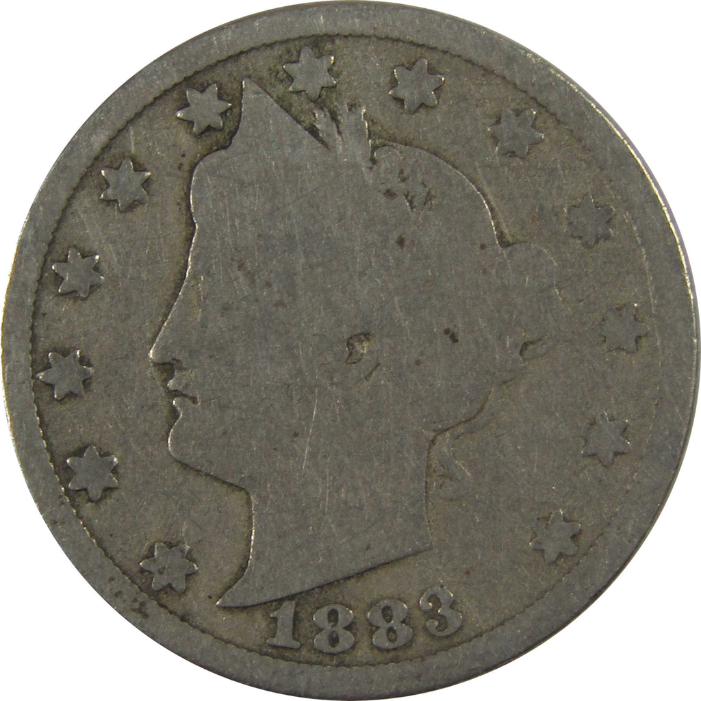 A genuine 1883 No Cents Liberty Head V Nickel Coin, in G Good Condition