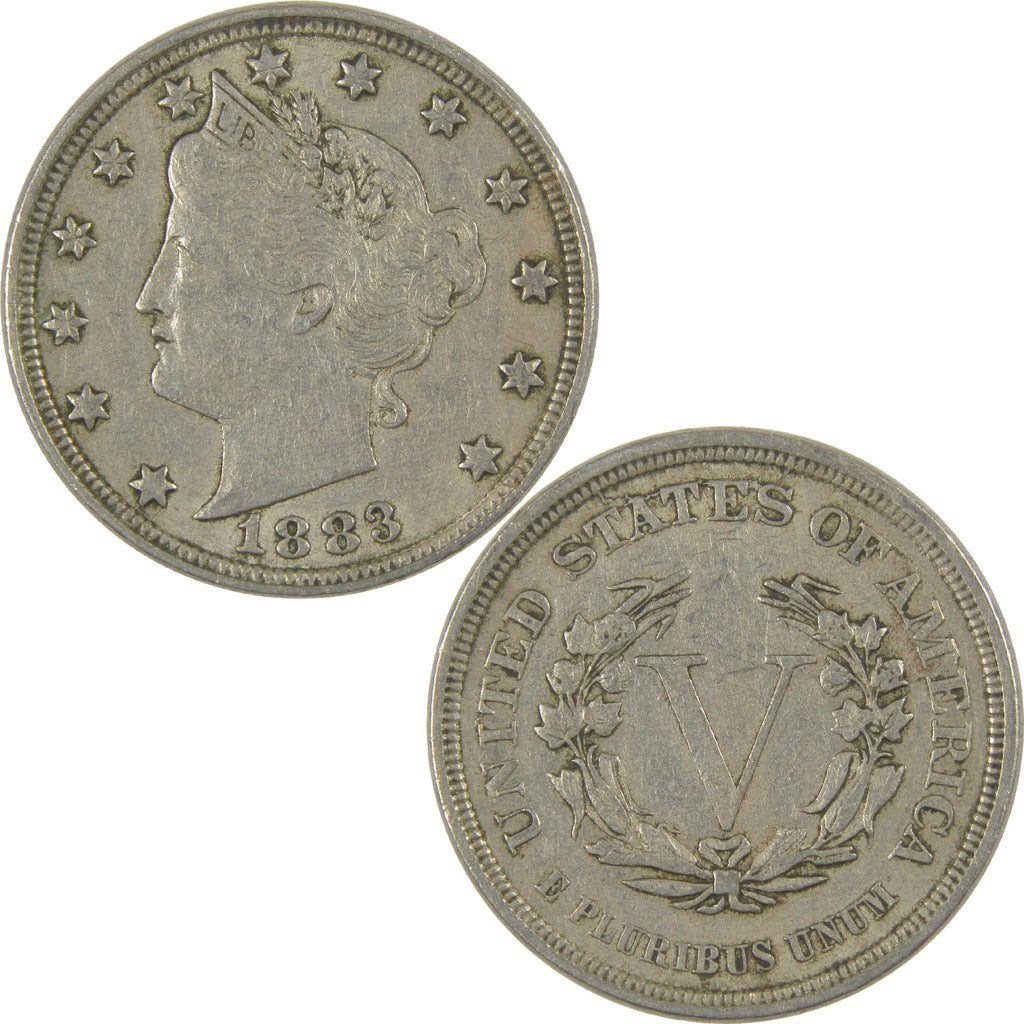 A genuine 1883 No Cents Liberty Head V Nickel Coin, in XF EF Extremely Fine Condition