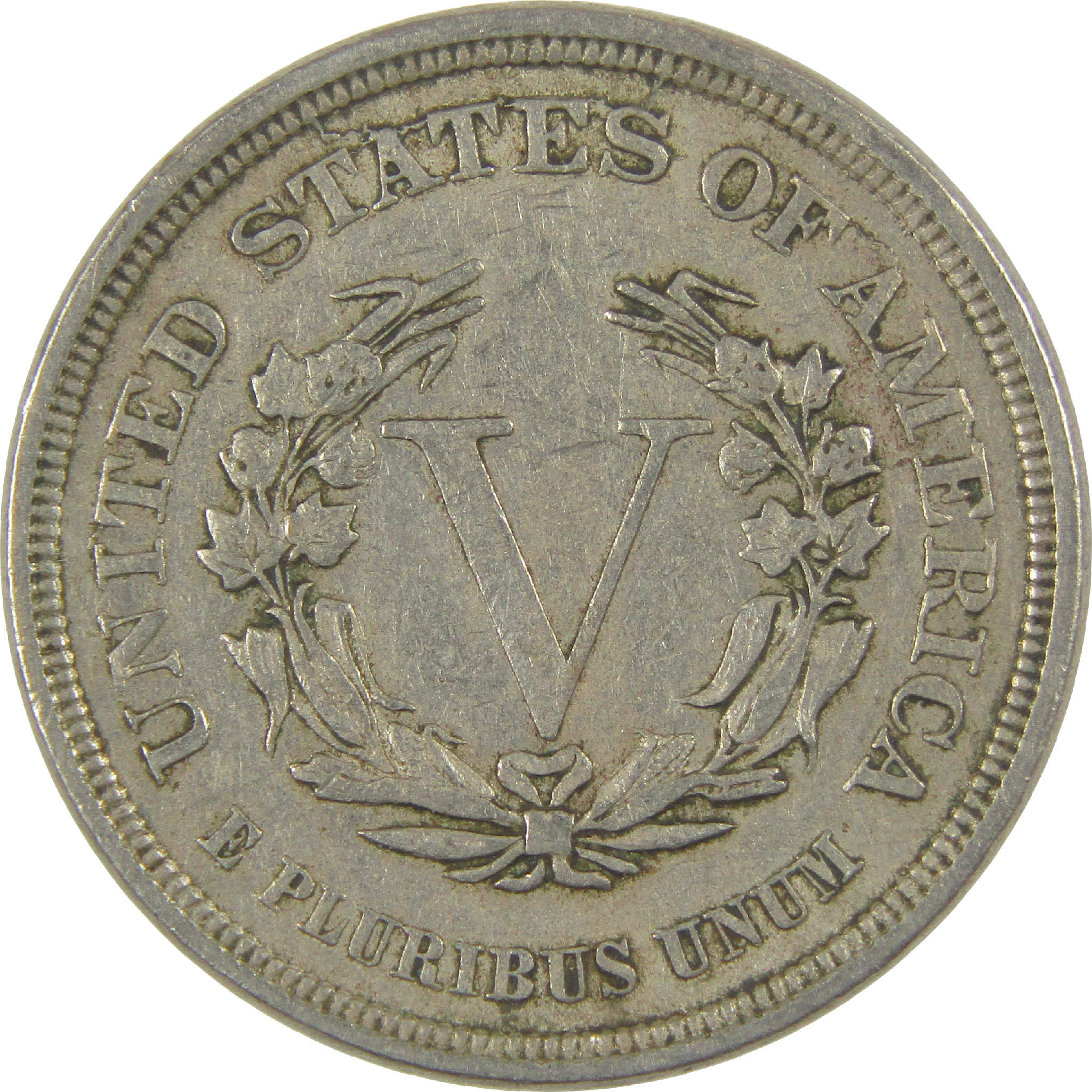 When first issued in 1883, Liberty Head Nickels (or "V" nickels) bore just a large Roman numeral "V" for the denomination. So the Mint soon added the word CENTS to stop con artists from gold plating them and passing them off as $5 gold pieces.