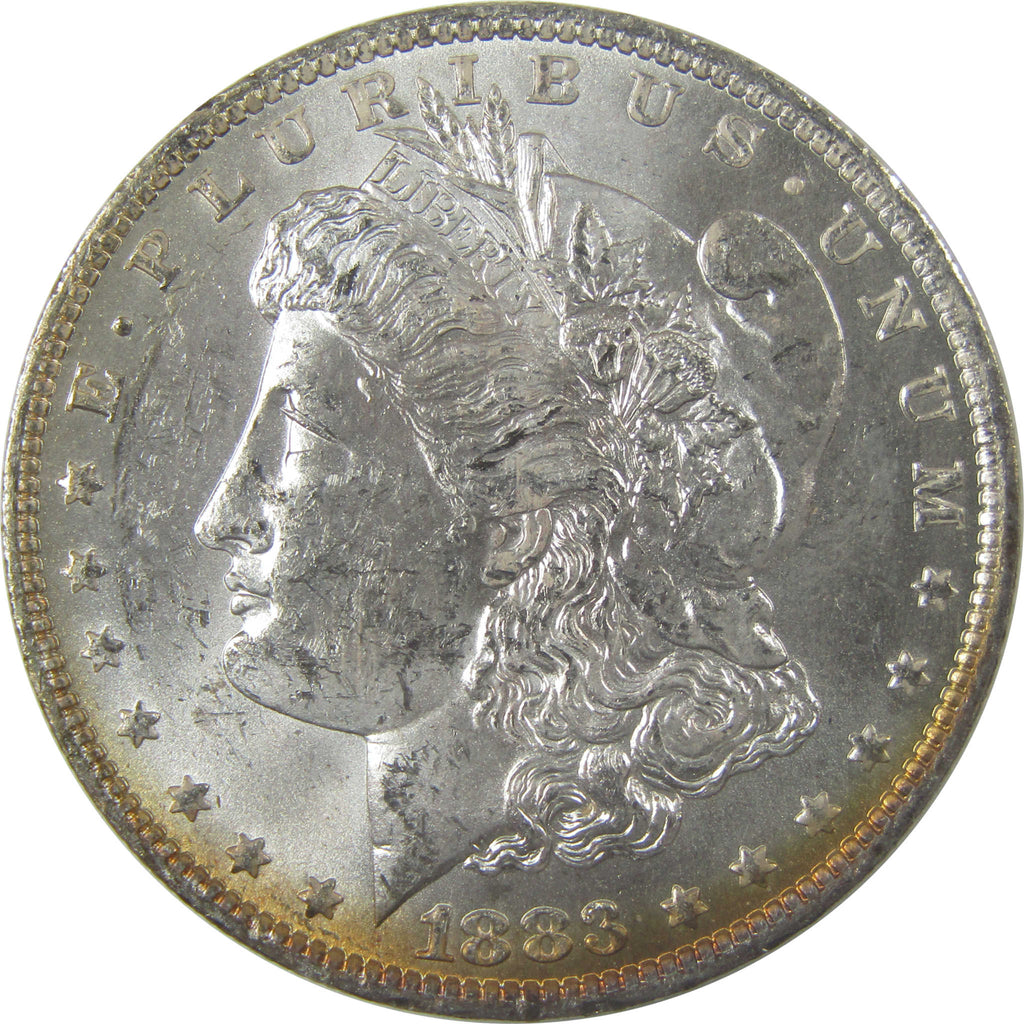 A genuine 1883 O Morgan Silver Dollar Coin, in Uncirculated Mint State Condition. Contains 90% Silver. Toned