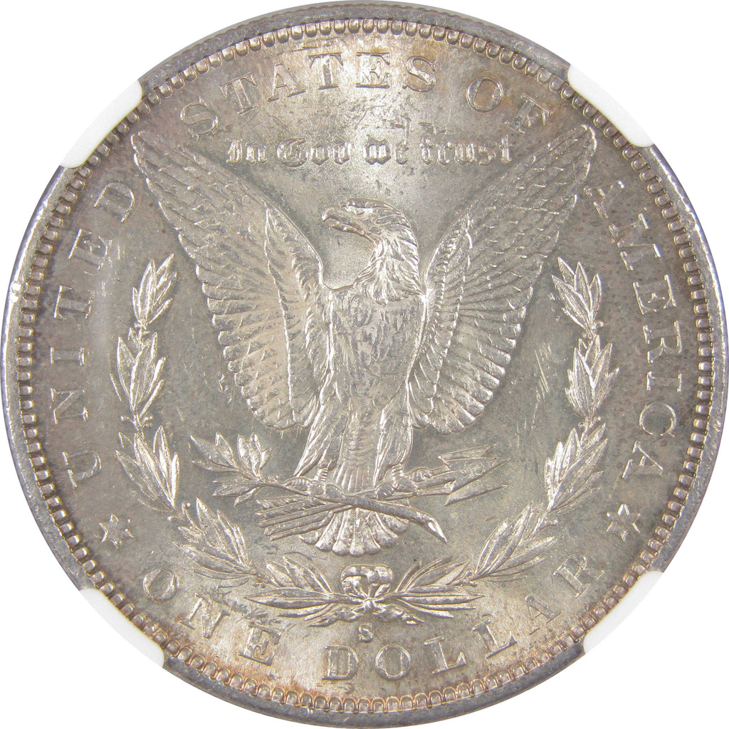 A genuine 1883 S Morgan Silver Dollar Coin, graded and certified MS 61 by NGC. Contains 90% Silver