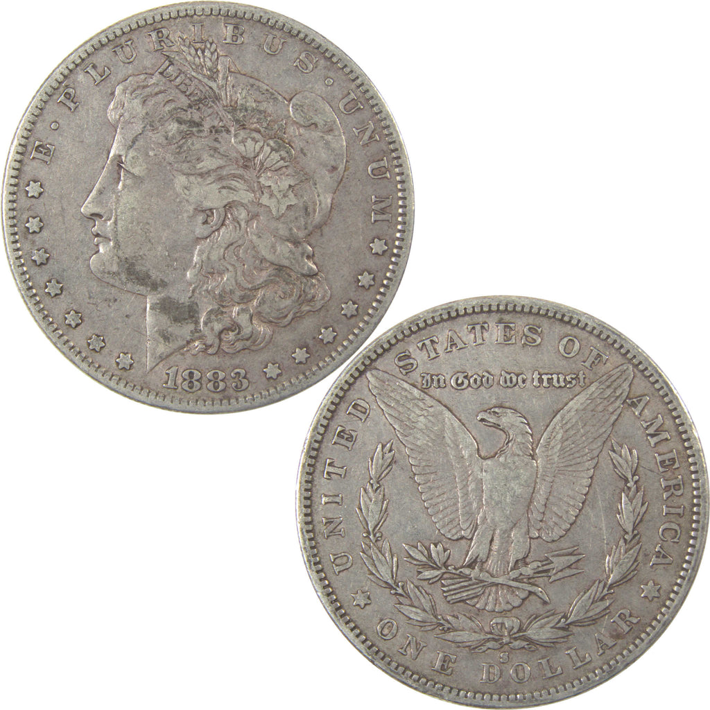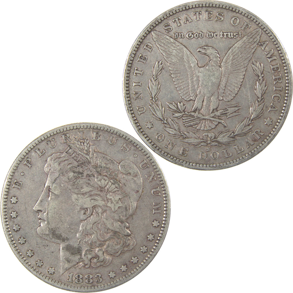 A genuine 1883 S Morgan Silver Dollar Coin, in VF Very Fine Condition. Contains 90% Silver