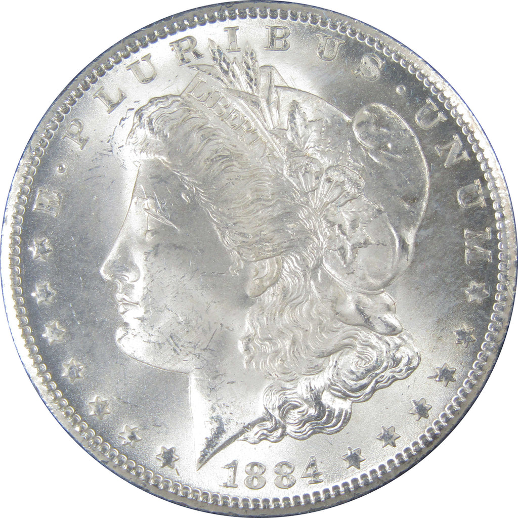 A genuine 1884 CC GSA Morgan Silver Dollar Coin, graded and certified MS 64 by NGC. Contains 90% Silver. Comes with the original General Services Administration (GSA) holder, but does not include the box or insert
