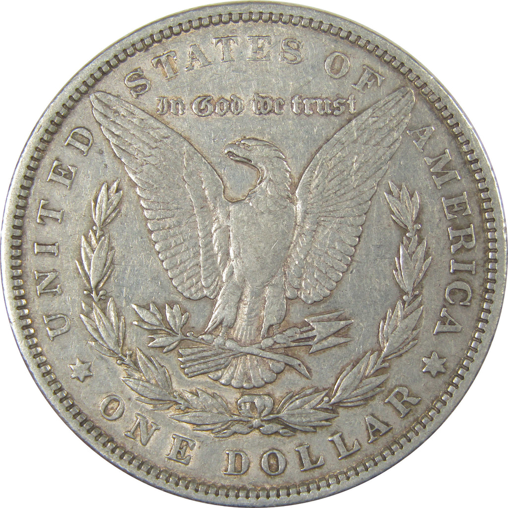 This large 90% silver Morgan dollar bears George T. Morgan's classic depiction of Liberty facing left in a Phrygian cap and a spray of leaves held by a ribbon inscribed LIBERTY. The reverse features an eagle clutching a branch and three arrows.