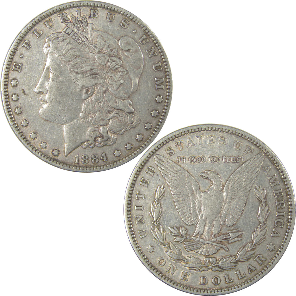 A genuine 1884 Morgan Silver Dollar Coin, in XF EF Extremely Fine Condition. Contains 90% Silver