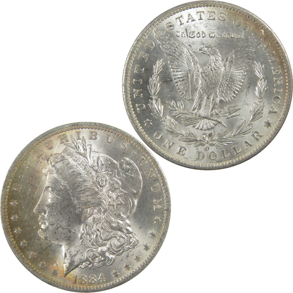 A genuine 1884 O Morgan Silver Dollar Coin, in Uncirculated Mint State Condition. Contains 90% Silver. Toned