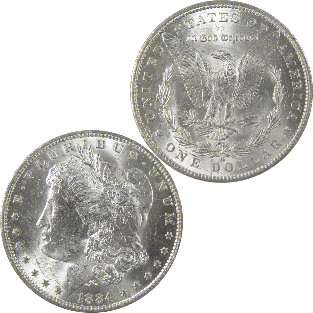 A genuine 1884 O Morgan Silver Dollar Coin, in Uncirculated Mint State Condition. Contains 90% Silver