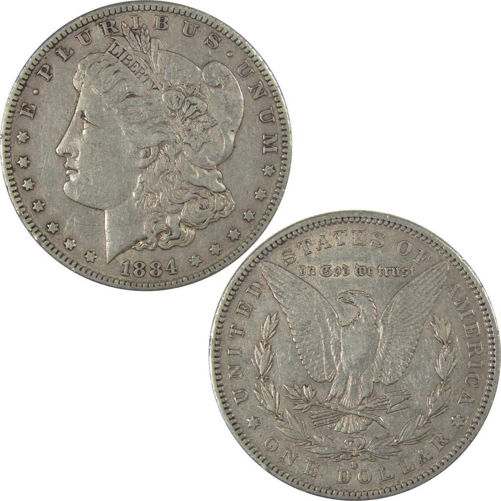 A genuine 1884 S Morgan Silver Dollar Coin, in XF EF Extremely Fine Condition. Contains 90% Silver