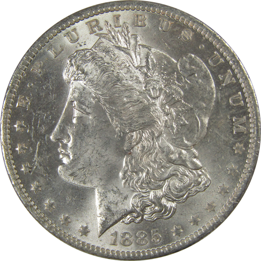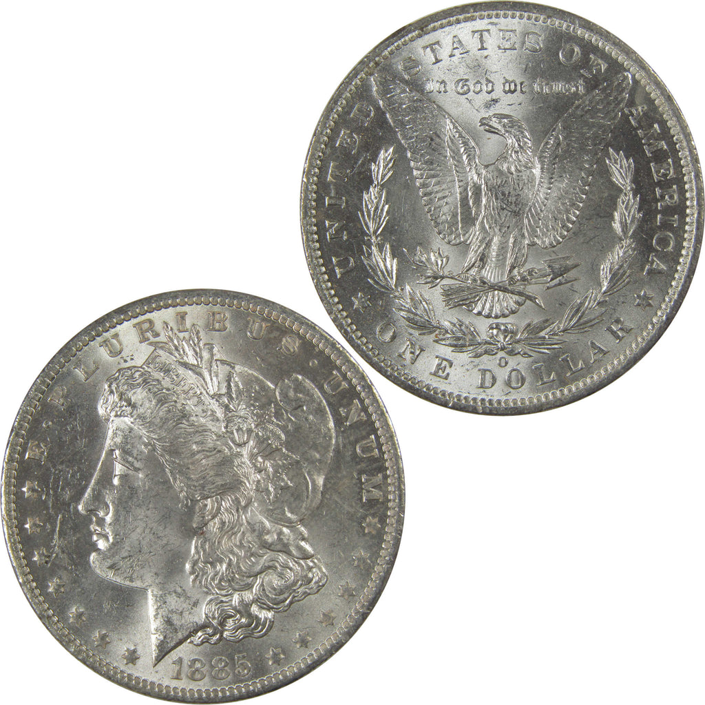 A genuine 1885 O Morgan Silver Dollar Coin, in Uncirculated Mint State Condition. Contains 90% Silver