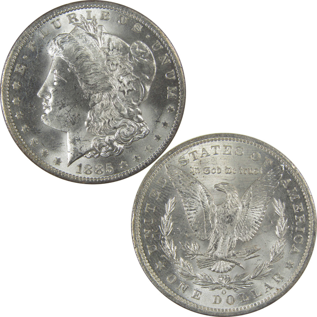 A genuine 1885 O Morgan Silver Dollar Coin, in Uncirculated Mint State Condition. Contains 90% Silver