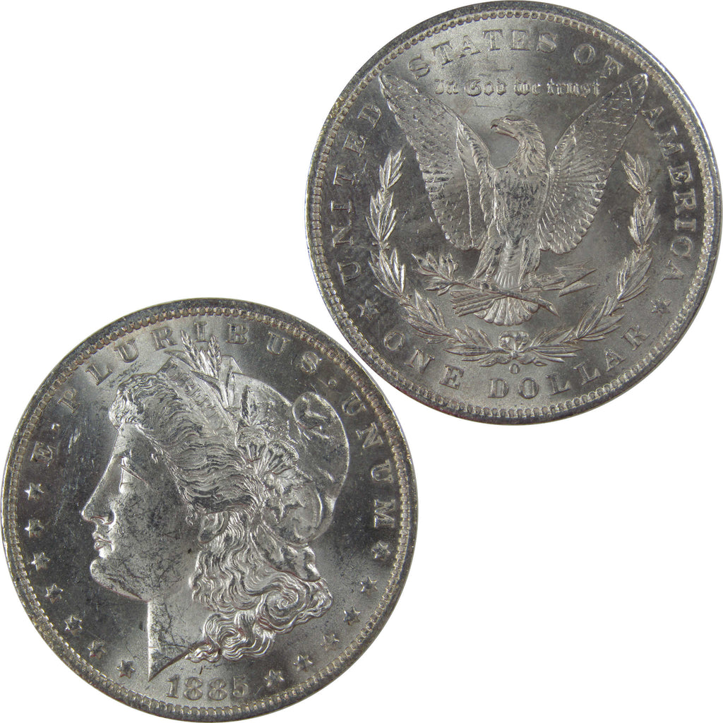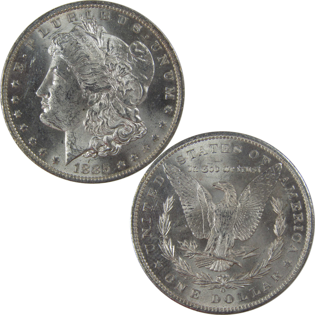 A genuine 1885 O Morgan Silver Dollar Coin, in Uncirculated Mint State Condition. Contains 90% Silver