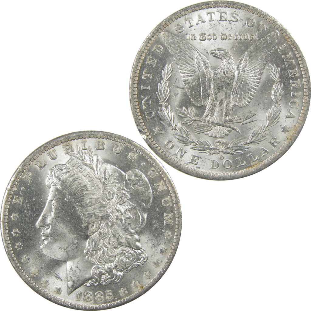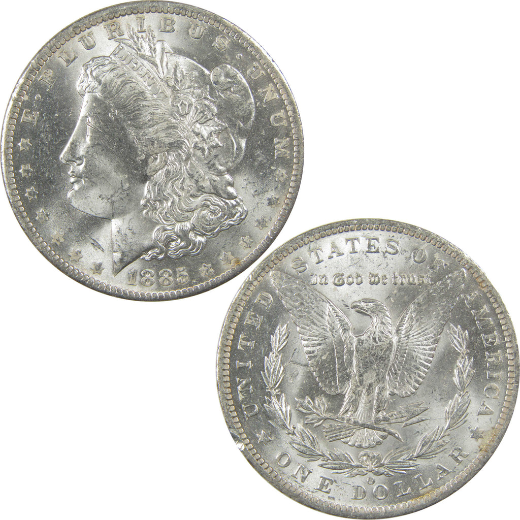 A genuine 1885 O Morgan Silver Dollar Coin, in Uncirculated Mint State Condition. Contains 90% Silver
