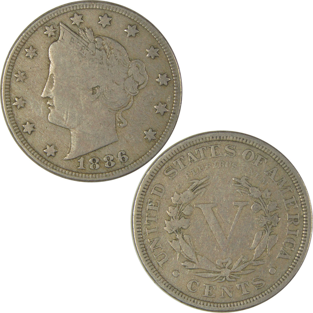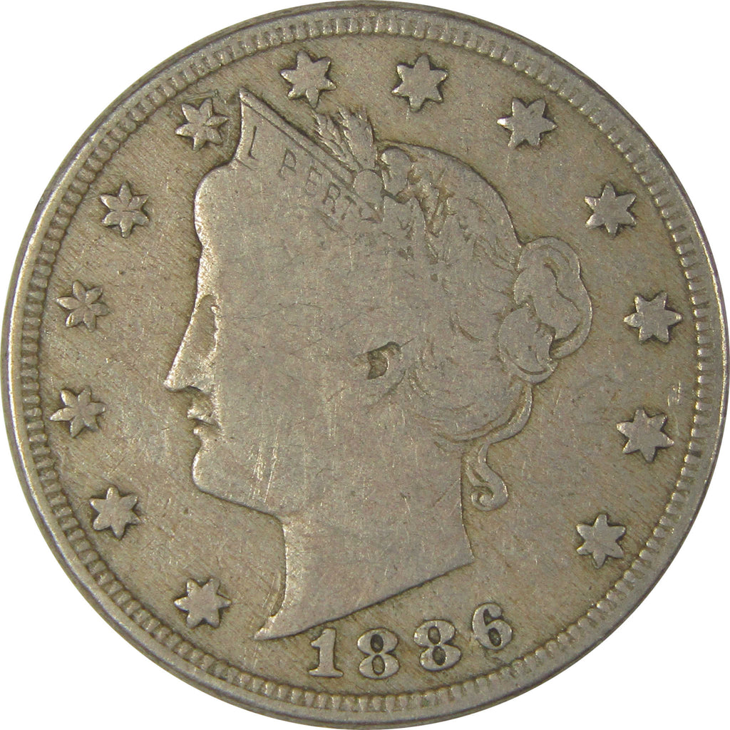 A genuine 1886 Liberty Head V Nickel Coin, in F Fine Condition