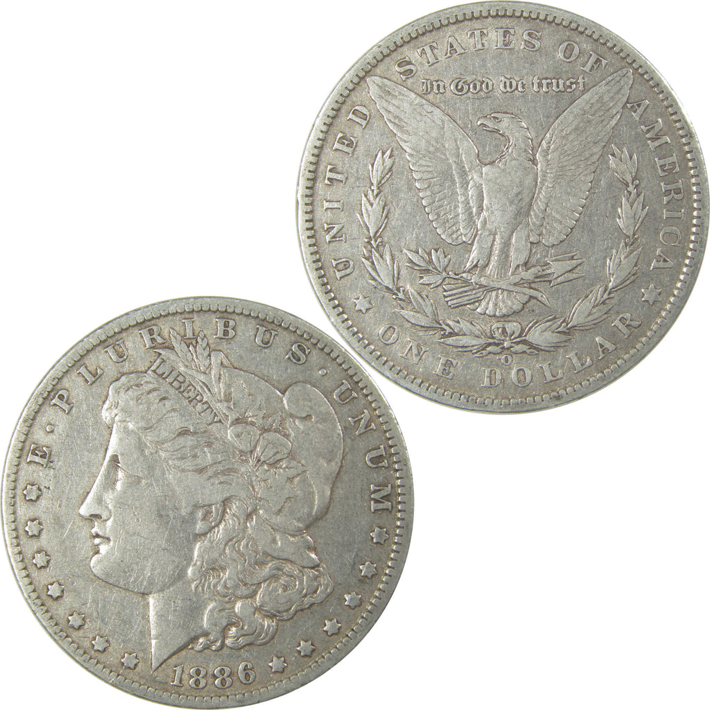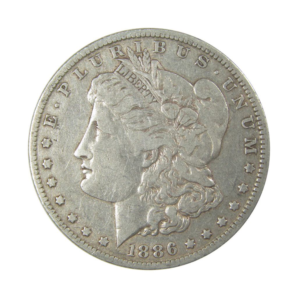 A genuine 1886 O E on Reverse Morgan Silver Dollar Coin, in VF Very Fine Condition. Contains 90% Silver