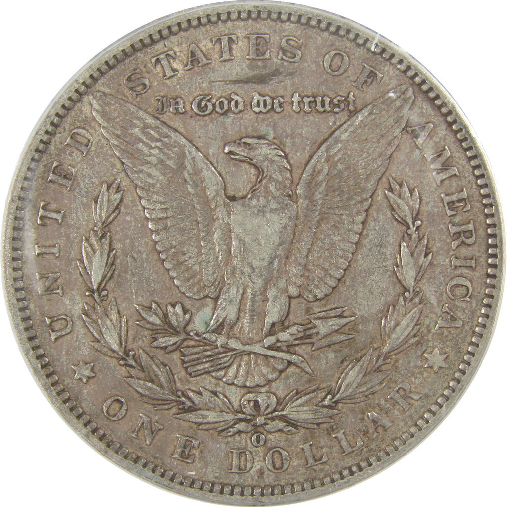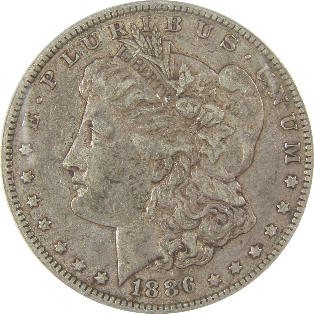 A genuine 1886 O Morgan Silver Dollar Coin, graded and certified EF 40 by ANACS. Contains 90% Silver