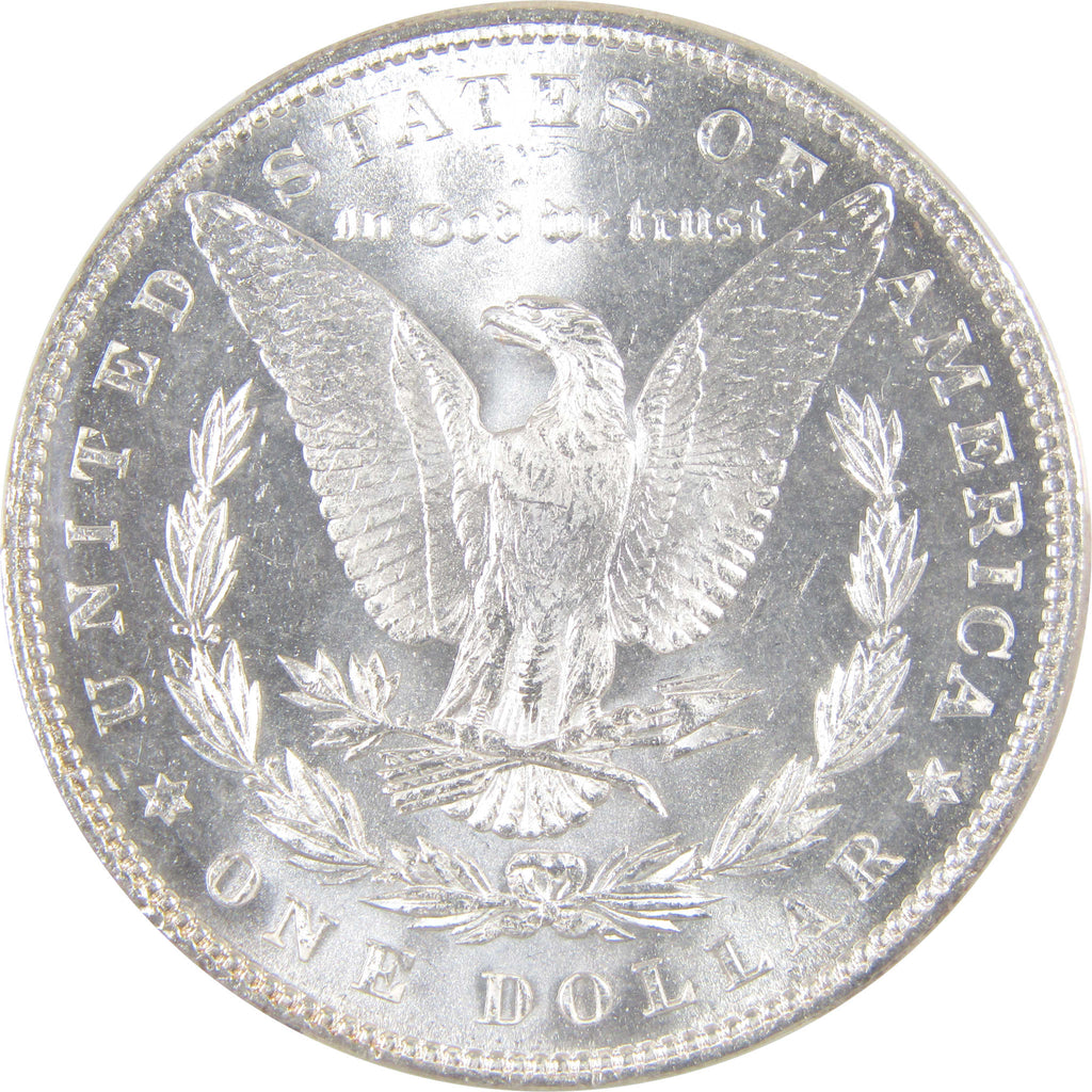 This large 90% silver Morgan dollar bears George T. Morgan's classic depiction of Liberty facing left in a Phrygian cap and a spray of leaves held by a ribbon inscribed LIBERTY. The reverse features an eagle clutching a branch and three arrows.
