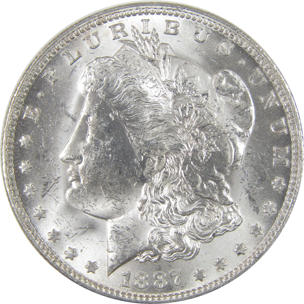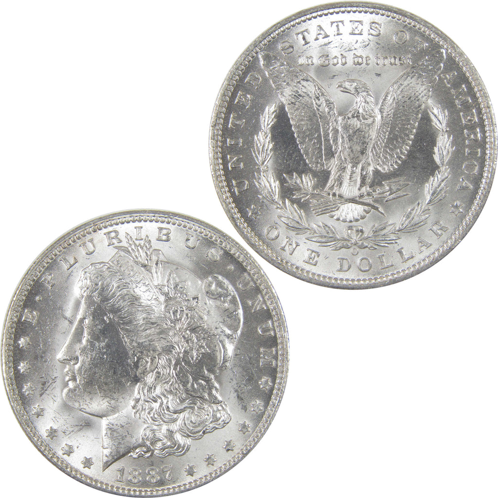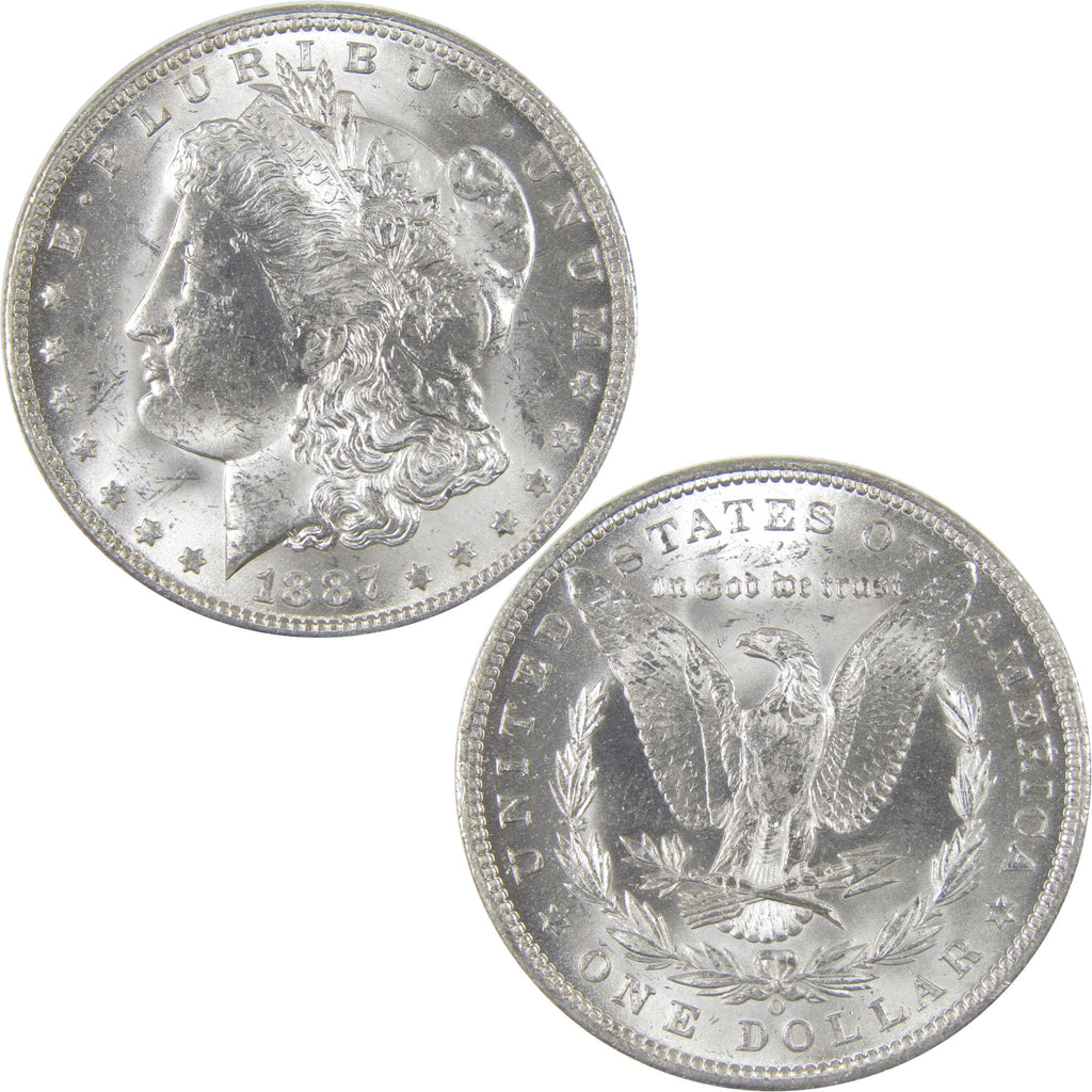 A genuine 1887 O Morgan Silver Dollar Coin, in BU Choice Uncirculated Mint State Condition. Contains 90% Silver