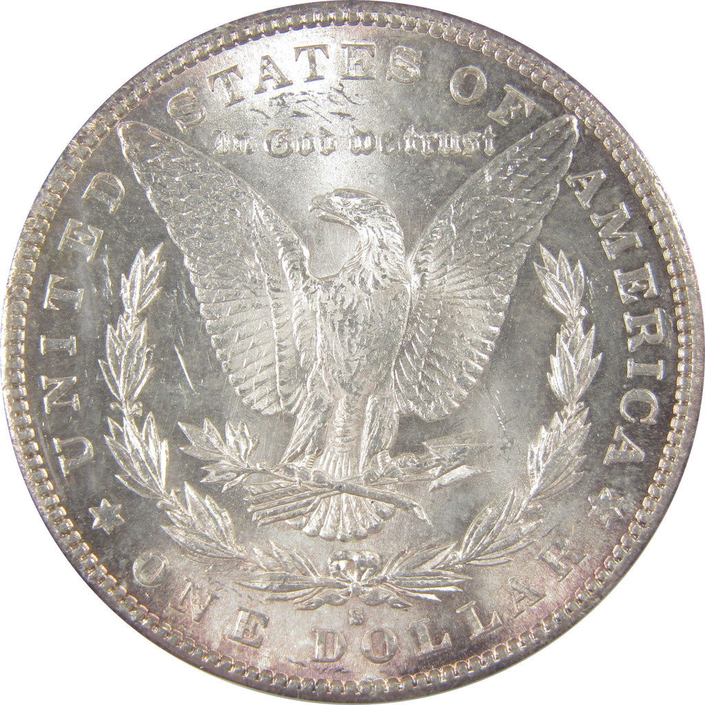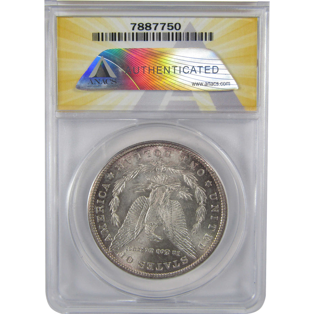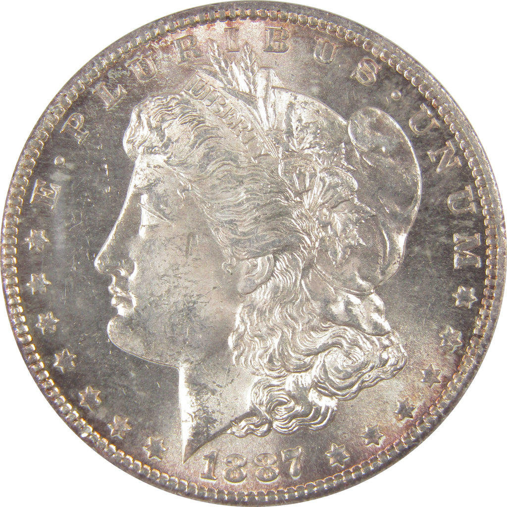 A genuine 1887 S Morgan Silver Dollar Coin, graded and certified MS 63 by ANACS. Contains 90% Silver
