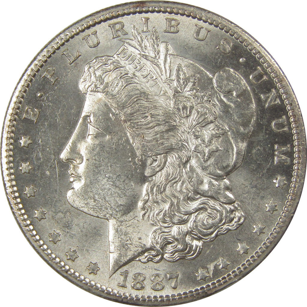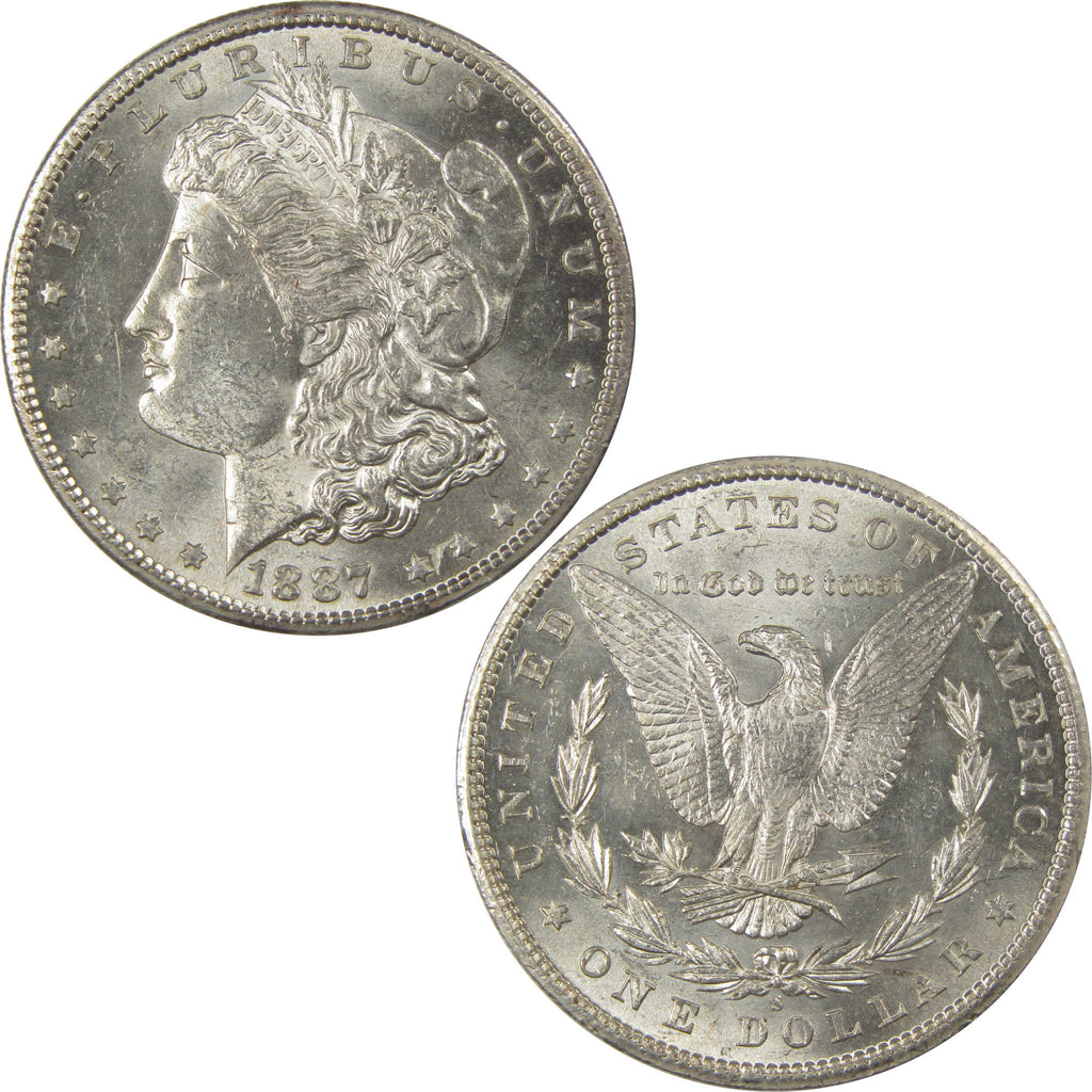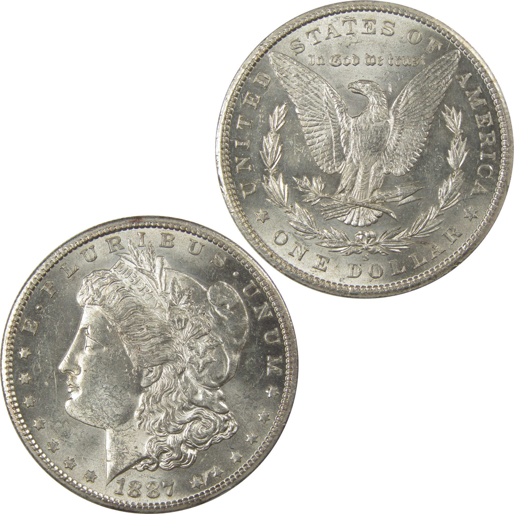 A genuine 1887 S Morgan Silver Dollar Coin, in Uncirculated Mint State Condition. Contains 90% Silver
