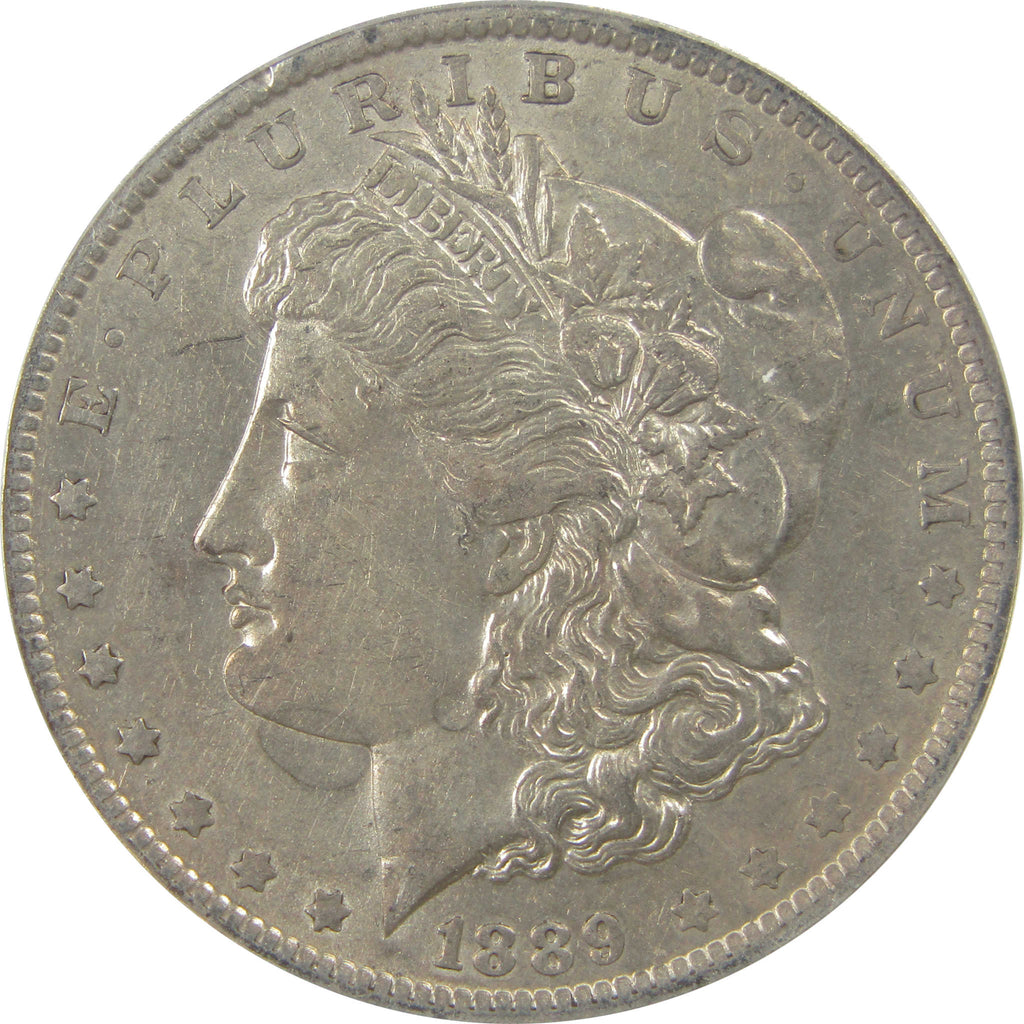 A genuine 1889 O Morgan Silver Dollar Coin, graded and certified AU 50 Details by ANACS. Contains 90% Silver. Rim Damage