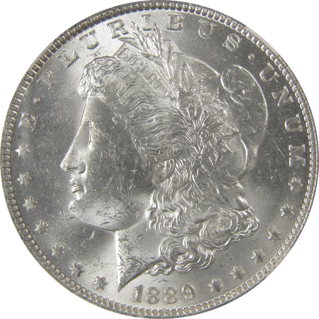 A genuine 1889 O Morgan Silver Dollar Coin, graded and certified MS 62 by NGC. Contains 90% Silver