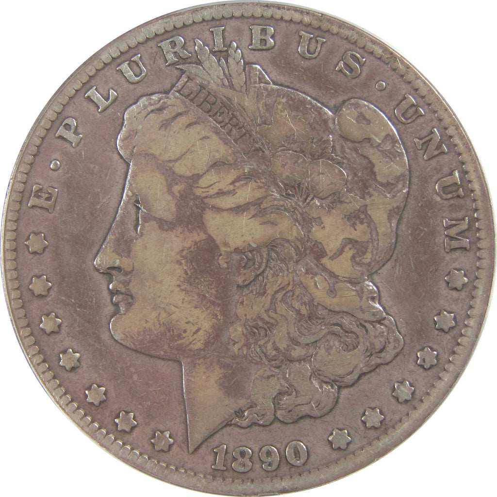 A genuine 1890 CC Morgan Silver Dollar Coin, graded and certified F 12 by ANACS. Contains 90% Silver