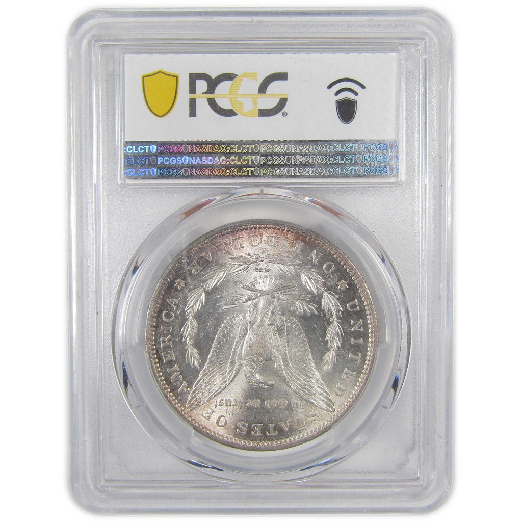 A genuine 1890 S Morgan Silver Dollar Coin, graded and certified MS 63 by PCGS. Contains 90% Silver. Toned