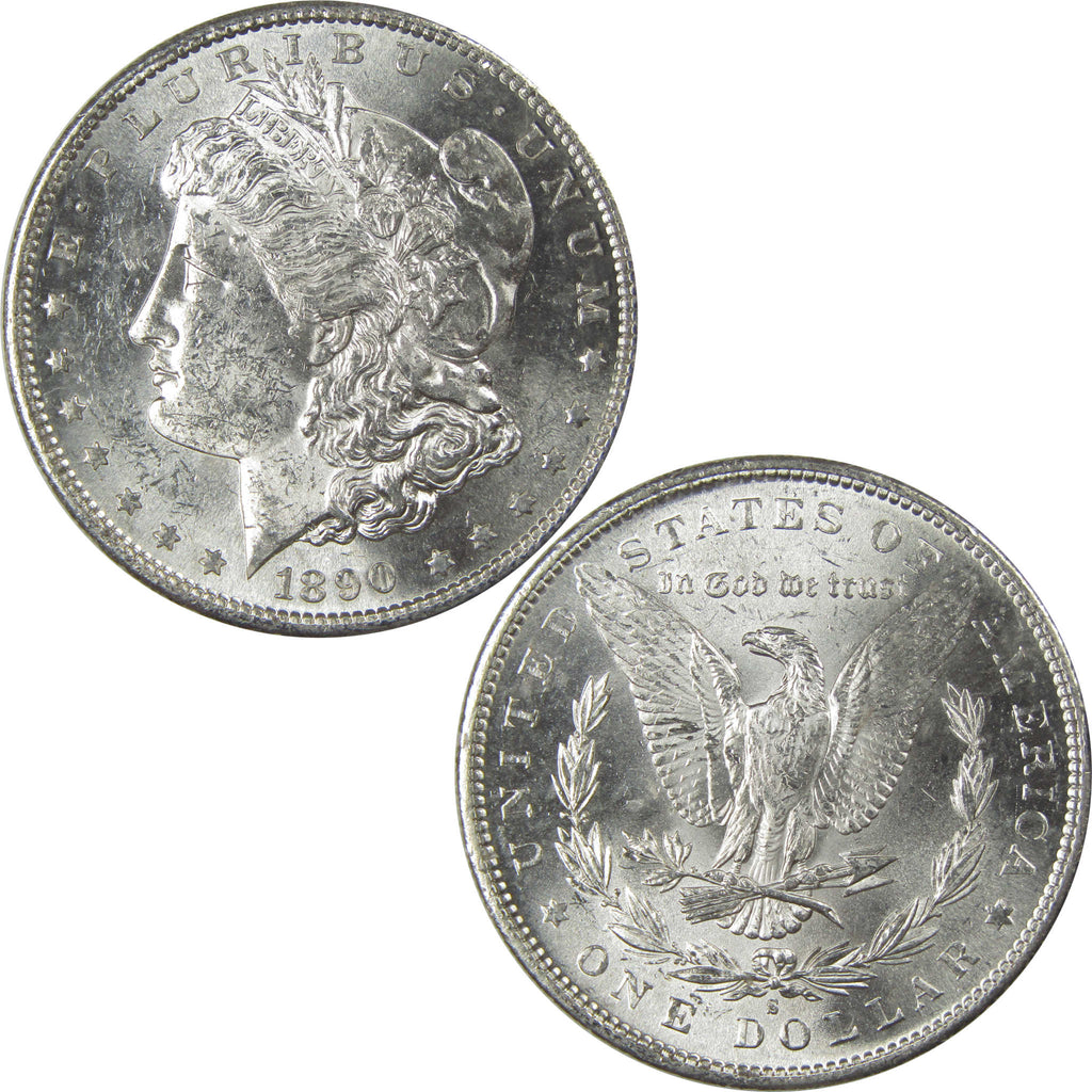 A genuine 1890 S Morgan Silver Dollar Coin, in Uncirculated Mint State Condition. Contains 90% Silver